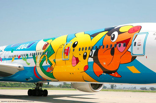 A ANA ainda tem um ou dois aviões estampados desde os primórdios da estampagem, que assim como a nova aeronave, fazem rotas domésticas no Japão, através de um Boeing 777. Na estampagem, o Pokémon Pikachu estrela. Vale lembrar que o interior da aeronave também é decorado com os bichinhos.