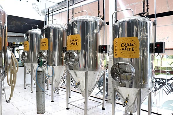 Fiz um rápido tour para conhecer a área de produção da cervejaria que é moderna e bem instalada. Quem me acompanha nesses 13 anos de blog sabe que eu já fui em inúmeras cervejarias pelo mundo afora. Inclusive nas Trapistas da Bélgica e da Holanda. Veja aqui. A Caras de Malte me chamou atenção por ser cercada de vidro onde os visitantes podem acompanhar a produção que aproveita a excelente água da Serra da Mantiqueira.