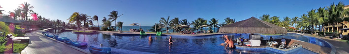 Nada de disputa para pegar mesas em frente a piscina ou espreguiçadeiras. As pessoas ficam a uma certa distância umas das outras, o que dá uma sensação de privacidade difícil de ser encontrada em resorts maiores.