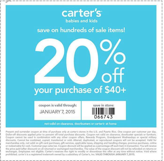 Cupom da Carter`s com 20% de desconto para quem gostar mais de U$40.