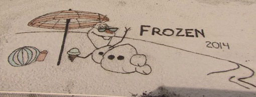 Neste ano eles aproveitaram o verão dos parques da Disney inspirado no filme “Frozen” e fizeram um Olaf gigante.