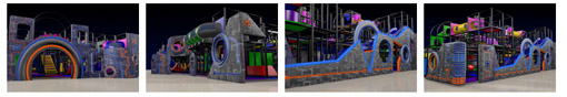 O Galaxy Fun Orlando foi construído no Pavilhão Dowdy, próximo à International Drive. O que antes era a enorme pista de gelo com 4400 metros agora será um espaço com três parques infantis com rampas, labirintos, túneis, escorregadores, pontes e muitos brinquedos para a criançada.