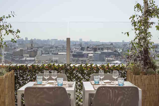 Localizado no rooftop da mais tradicional loja de departamentos da Europa, o espaço, além de oferecer uma das maiores e melhores vistas de Paris, é uma ótima opção para se degustar a gastronomia da cozinha mediterrânea entre uma compra e outra.
