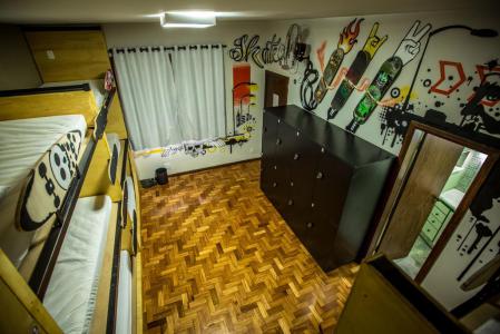 Hostel com decoração com tema de aventura e esportes radicais | Quartos compartilhados com acesso a armários individuais | Cozinha compartilhada | Churrasqueira, jogos de tabuleiro, biblioteca, bilhar, lounge e jardim | Localização central
