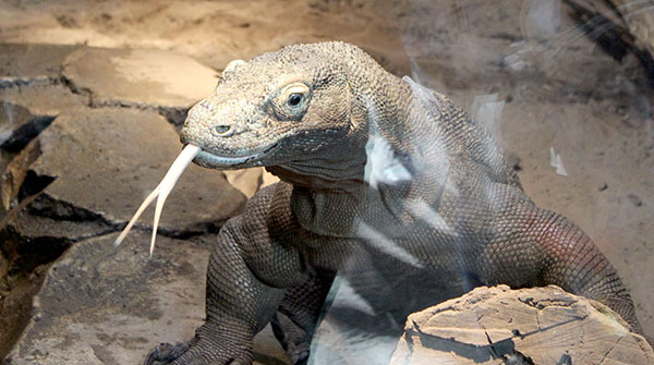 Vimos o dragão de Komodo sendo alimentado e descobrimos que o grandão é fã de salsicha.
