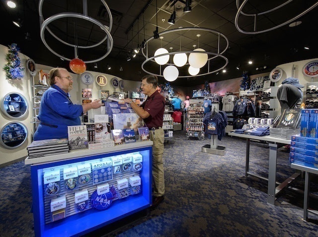 Esta nova loja proporciona a experiência de compras interativas, um inventario muito maior de itens, além de ter um artefato histórico incorporado em sua estrutura, no Complexo de Visitantes da NASA.