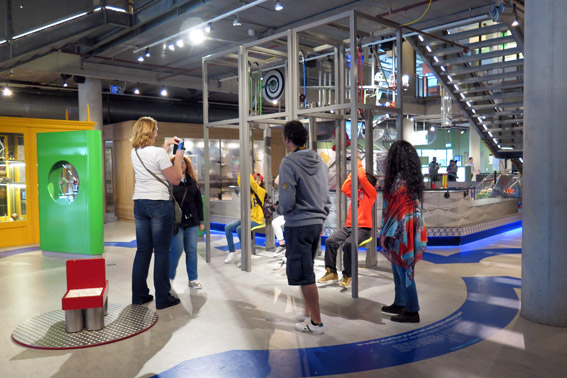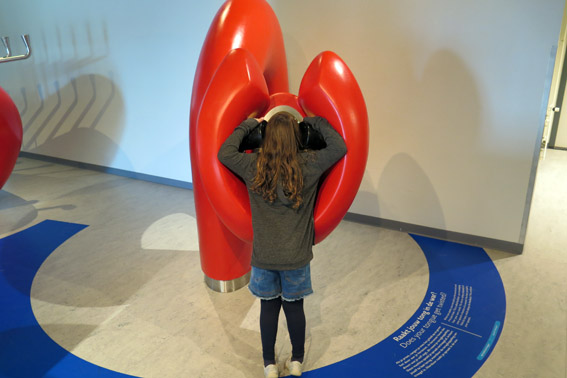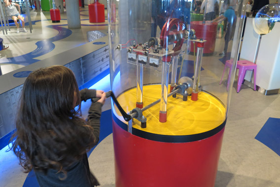 A parte que as meninas mais adoraram foi a “Sensational Science”. Elas brincaram muito com as luzes, sons e eletricidade. Esta parte é dedicada à física e tem interações como aquele globo que lança “raios” onde a mão está, um equipamento para sussurrar e se comunicar com a pessoa do outro lado da sala, espelhos, imãs, o canhão de ar que sopra uma bola para cima. Tudo super acessível para os pequenos e muito divertido. Aqui também está o espaço para brincar com bolhas de sabão gigantes, como o que tem aqui no Museu Catavento em São Paulo. Um dos favoritos delas!