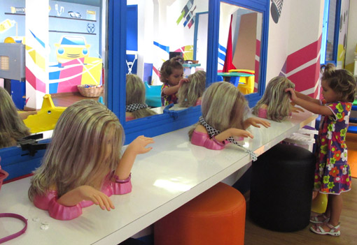 Além disso, o “Kids Club” é bem equipado com atrações para os meninos e meninas. Não reparei tanto na dos meninos porque a Vitória não deixou, mas consegui ver os carrinhos e a oficina com ferramentas.