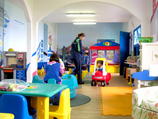Sobre a programação tenho alguns comentários. O pessoal da recreação aproveita muito bem o espaço das enormes salas para brincar com os pequenos quando o tempo não está bom e durante a noite. Repare no tamanho da sala com os brinquedos infláveis.
