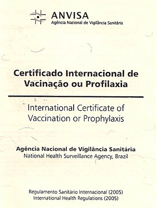 Outro documento obrigatório para entrar na Índia é o Certificado Internacional de Vacinação contra a Febre Amarela.