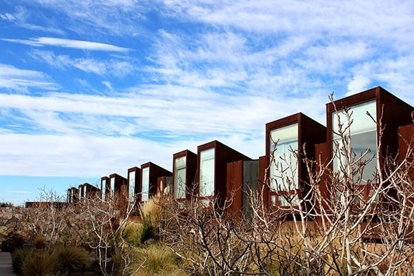 São 32 suítes dispostas em duas linhas de uma forma em que todas elas ficam com o vulcão Licancabur em frente.