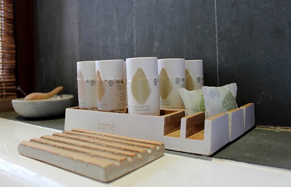 Na área coberta fica a piscina aquecida com jatos d’água, a sauna e as salas para os tratamentos e massagens. O Uma SPA tem as paredes de pedra com as divisórias de bambu.