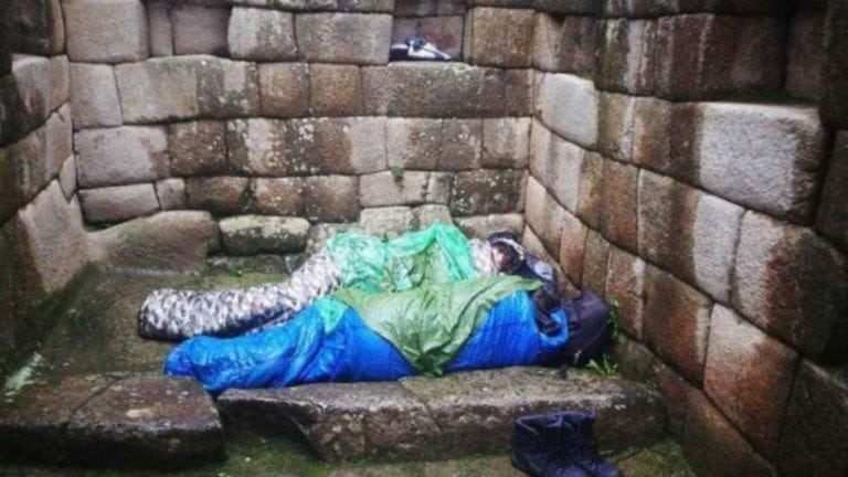 Dois turistas argentinos desafiaram as leis e usando sacos de dormir passaram a noite na cidade perdida dos Incas.